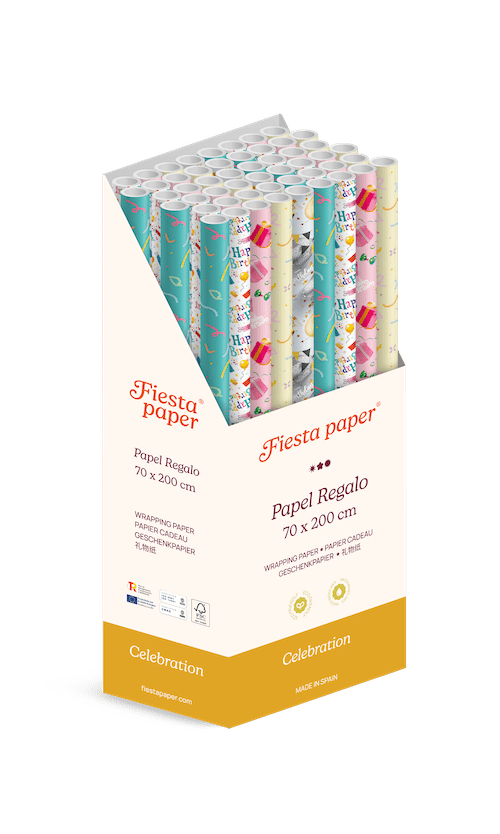 Diseñado en España, este papel celebra la tradición de regalar con un giro moderno, dinámico y muy visual.